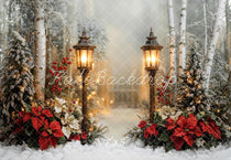 Kate Christmas Lantern Poinsettia Snowy Forest Backdrop Designed by Emetselch